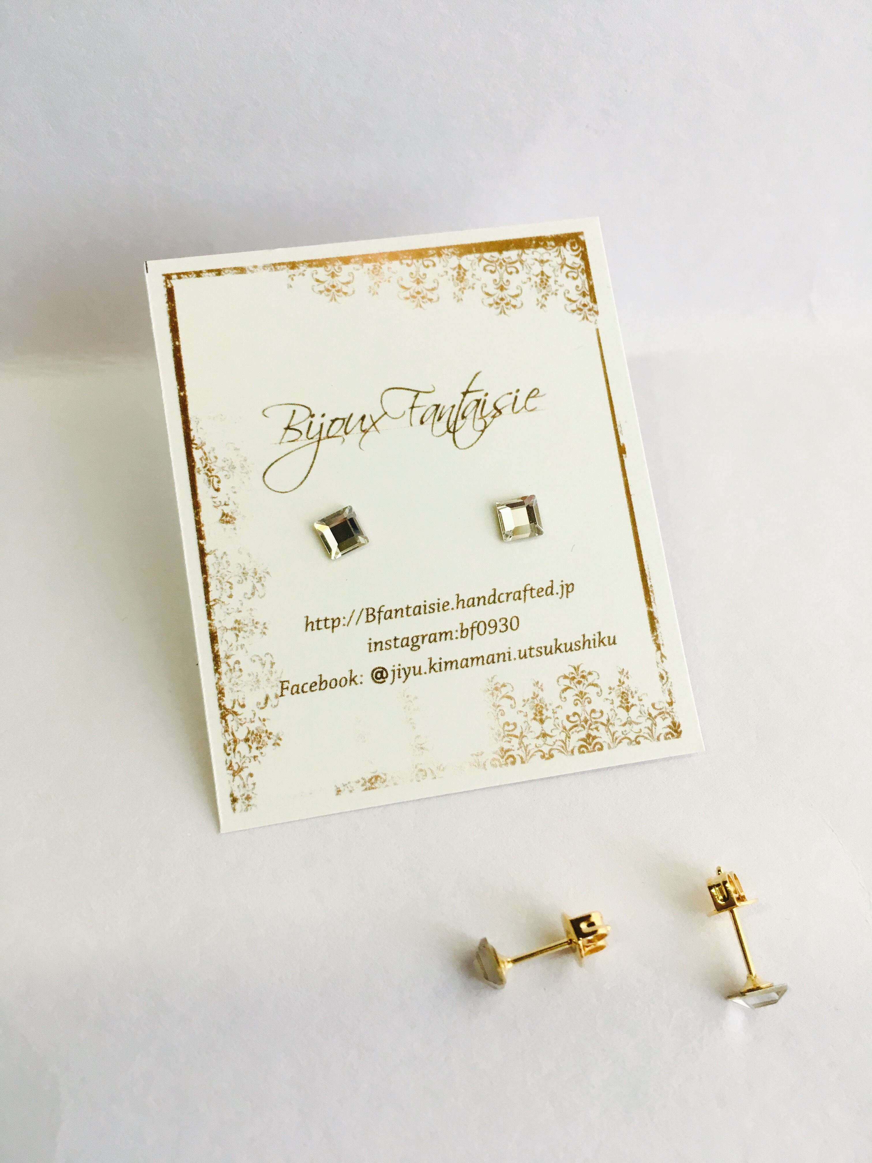 4ミリ前後のスワロフスキーモチーフのペタッとしたピアスです。