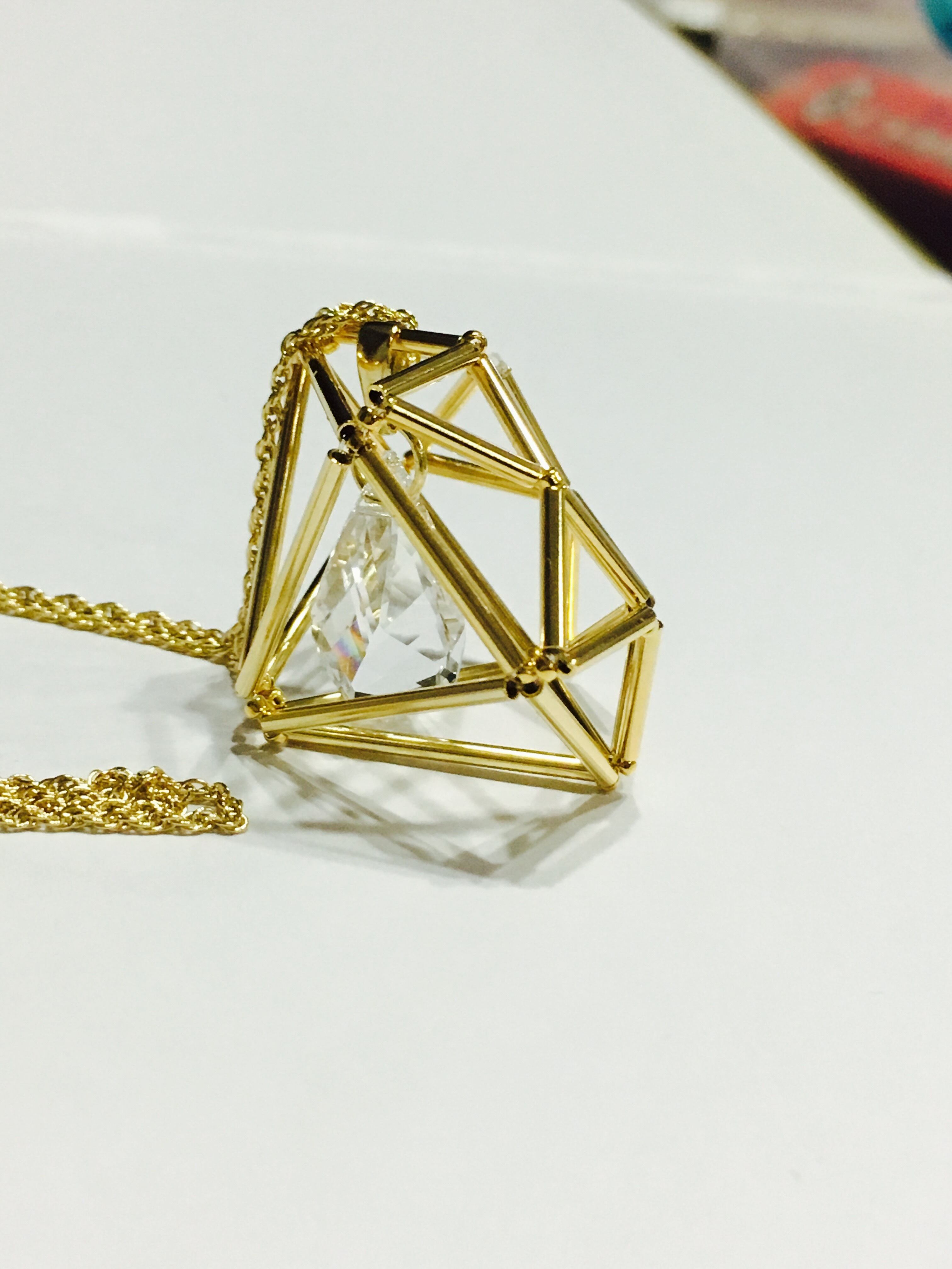 ヘキサグラムのような、ダイヤモンドのような形のヒンメリにスワロフスキーをぷらぷらさせてみました。
