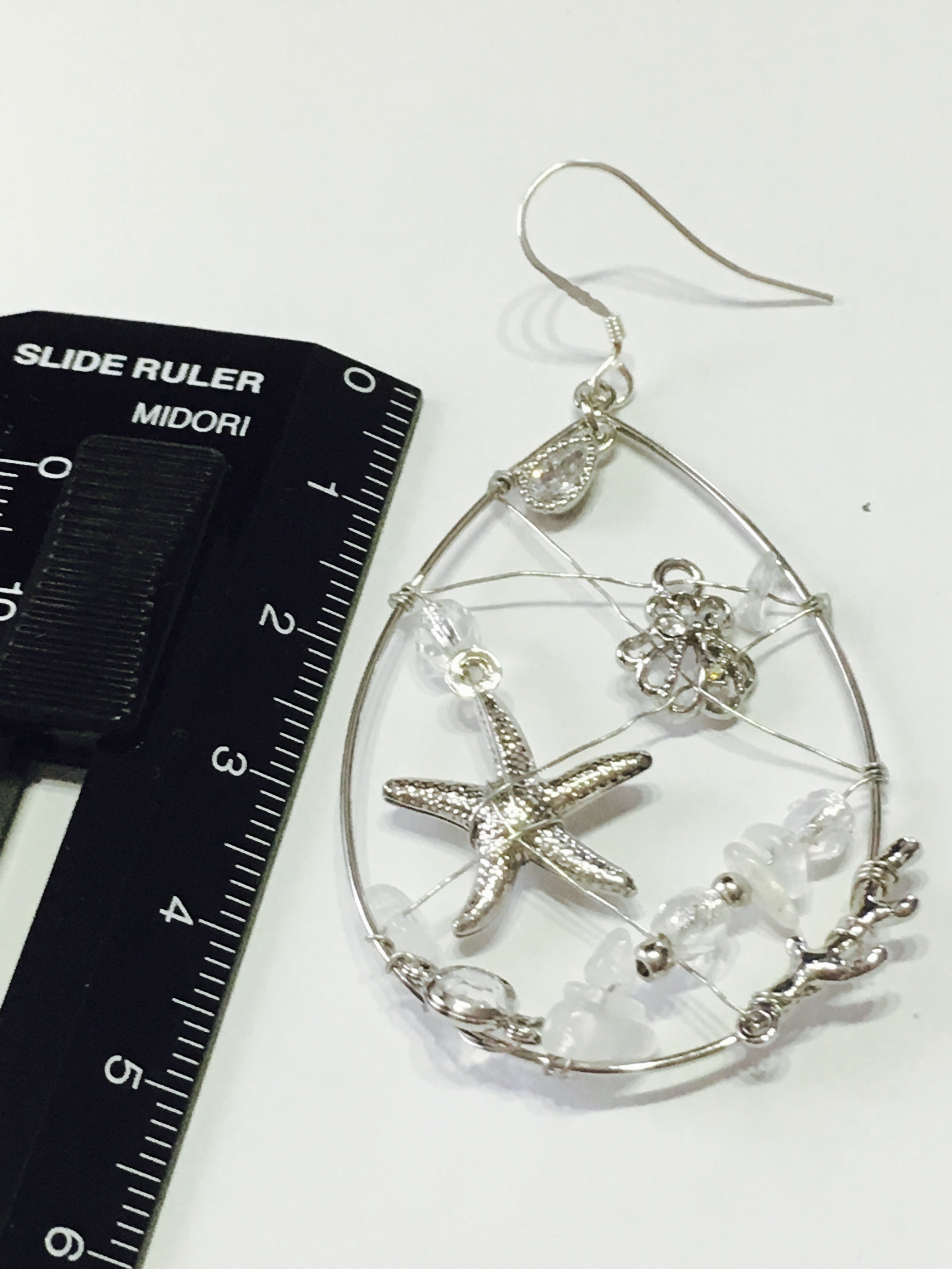 上品にキラキラ光る、海の生き物とムーンストーンの大ぶりサマーピアスです。
