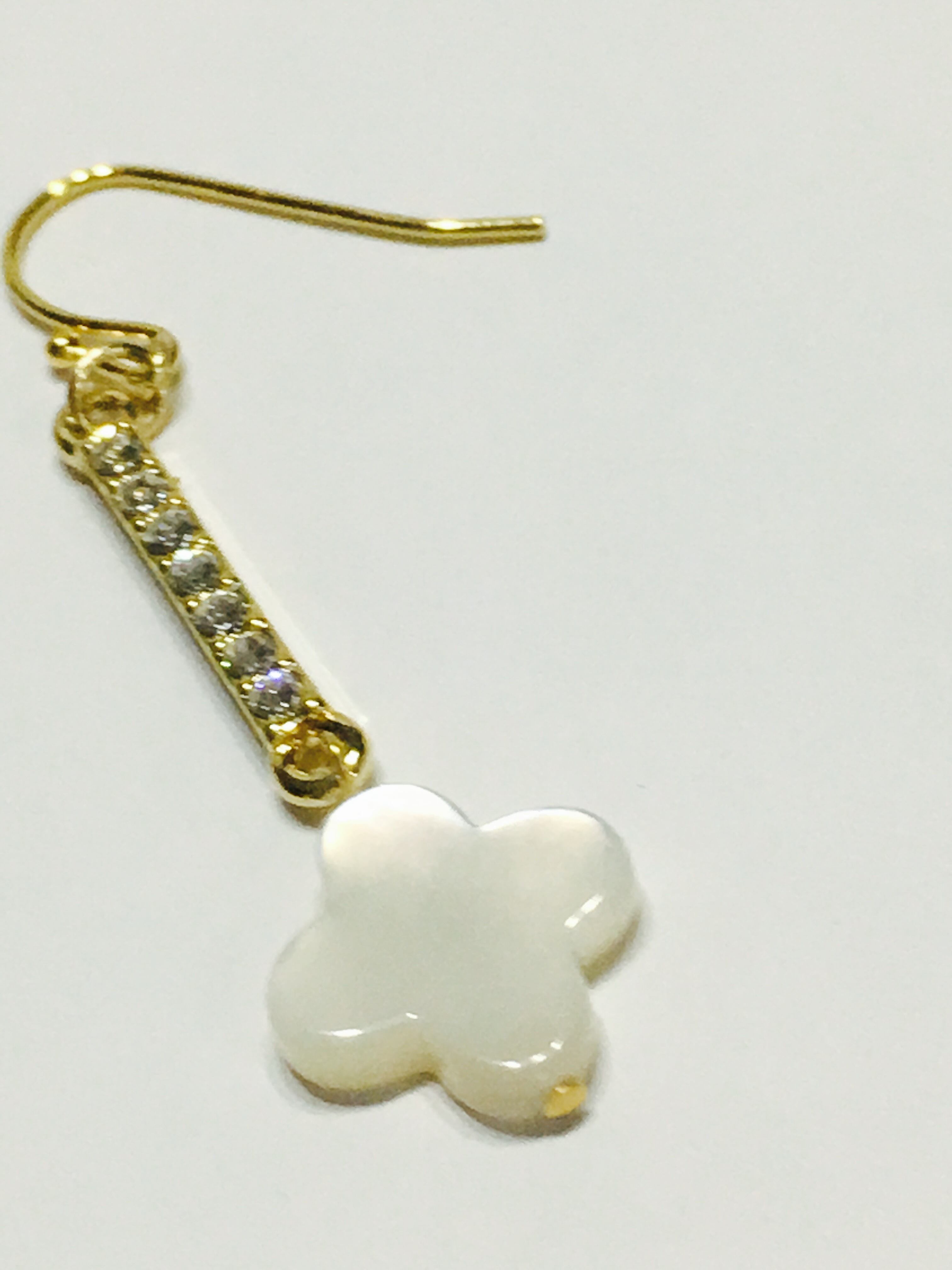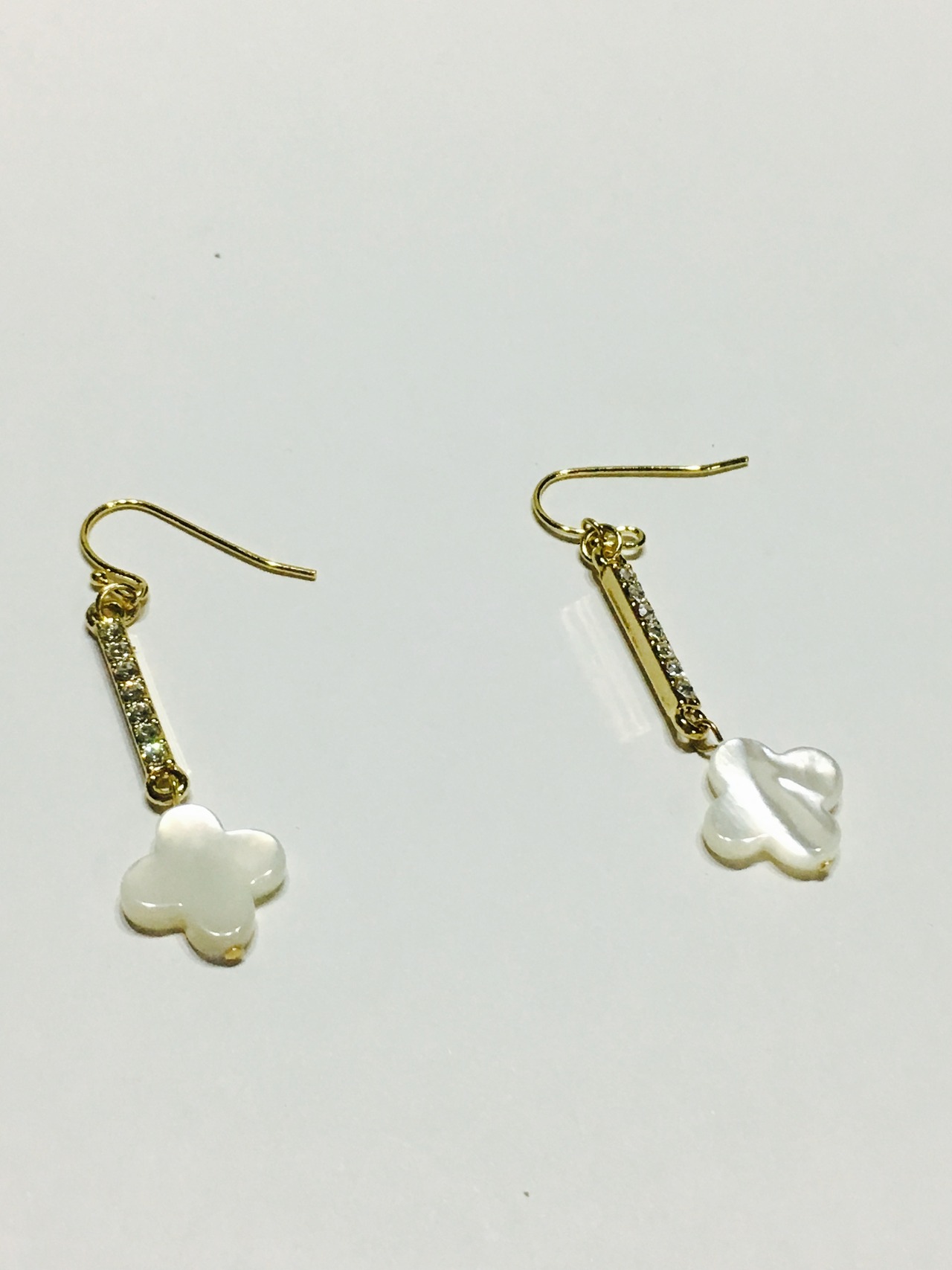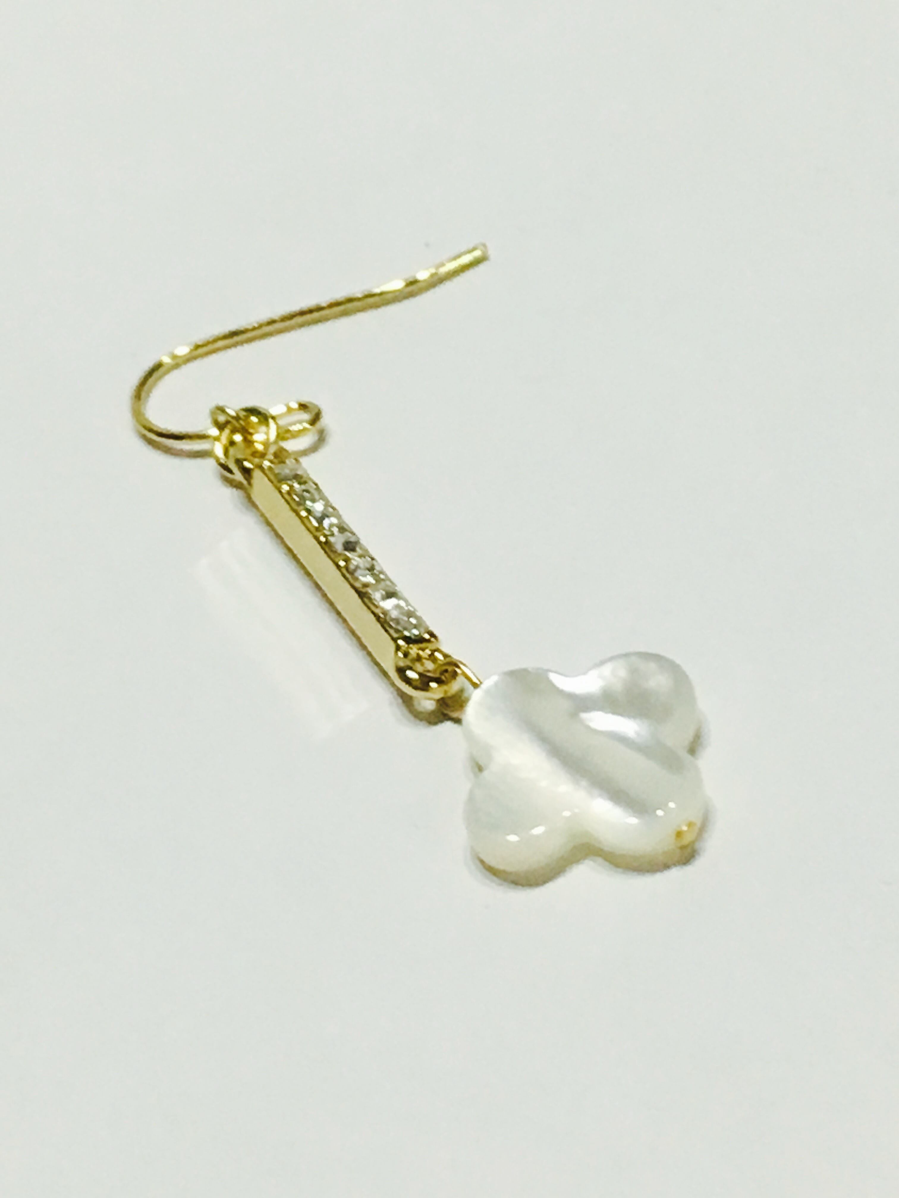 白蝶貝(マザーオブパール)のピアス。ストーンバーが揺れるたびにキラキラ反射します。